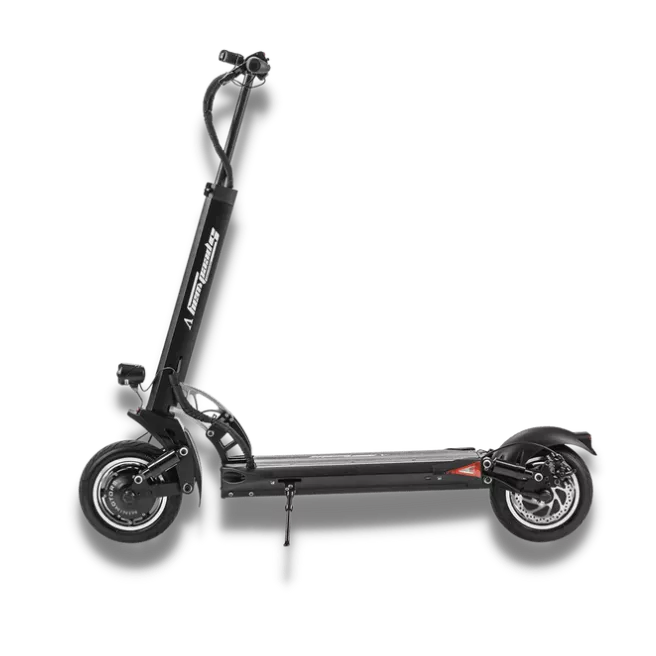 Avec son châssis large en aluminium renforcé, la trottinette offre une stabilité et un confort de conduite exceptionnels. De plus, les amortisseurs doubles avant et arrière assurent une tenue de route impeccable et une maniabilité parfaite.